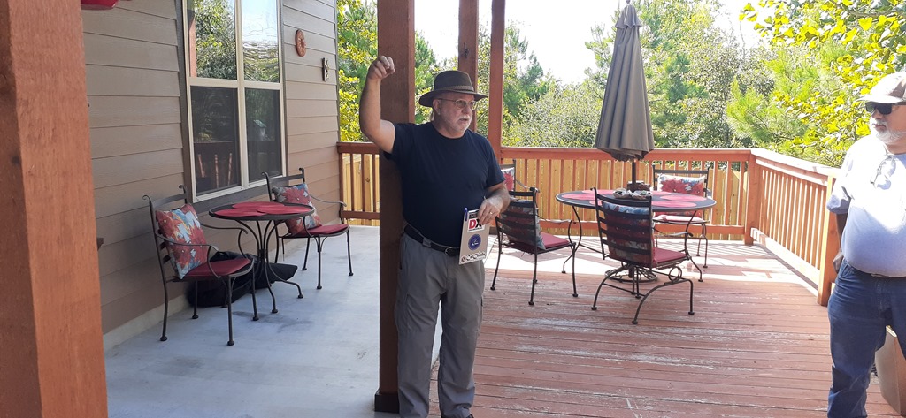 September cooled down, so we worked on customizing the new travel trailer. Larry installed a 30 amp electric management system (EMS) to protect the 110 volt circuits. Then he added cabling for cable TV, satellite TV, cell signal booster, Wi-Fi repeater, and a 20 amp circuit dedicated to the air conditioner. Then he replaced the bathroom faucet with one that is long enough that you can get your hands wet, and the kitchen faucet with one that has a retracting hose. Sue added storage systems and organized the storage and other interior items. Our friends, Robin and Jan Murphy from Folsom, California spent a few days with us looking over the area and homes available for when they can escape from California. And also in September, Sue joined a local Bunco group (the dice game, not the crime) that meets and plays once-a-month.
